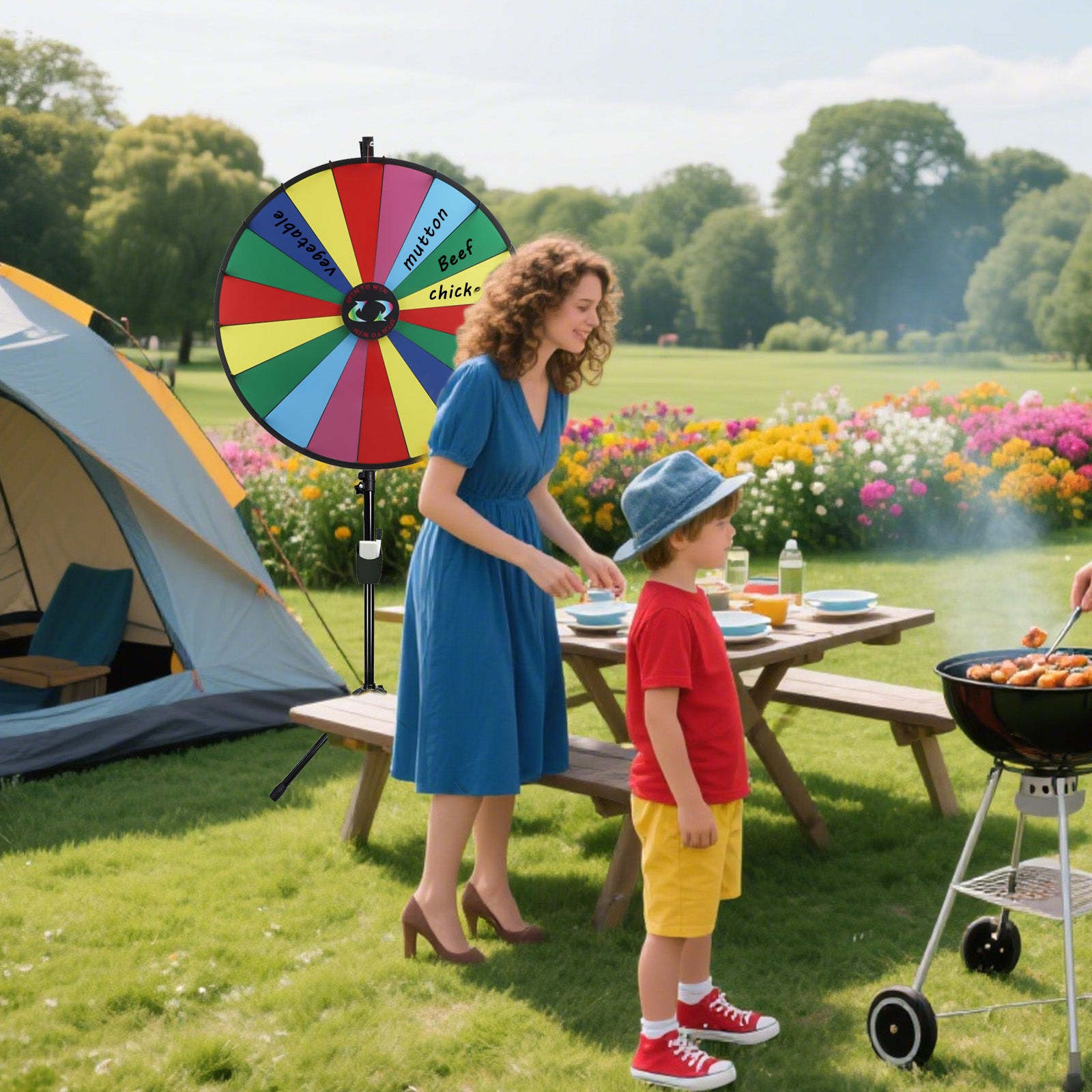 DIY Prize Wheel – 30" spinner with 18 colorful slots and dry erase surface for easy customization and reuse.