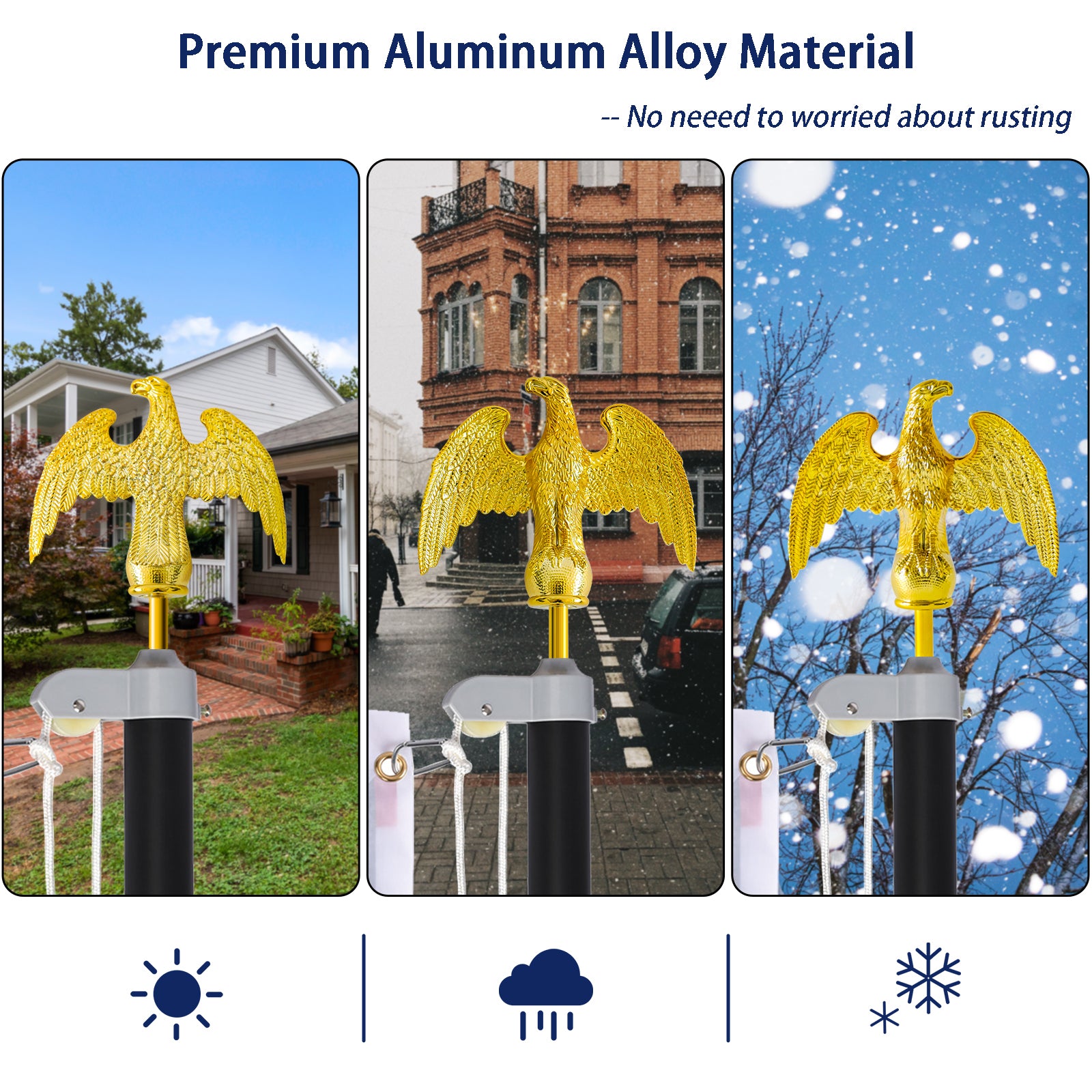 Eagle Flag Pole Topper – Gold Eagle Finial Ornament, 1/2"-13UNC Thread, Fits 20/25/30 Ft Telescopic & Sectional Flagpoles Outdoor